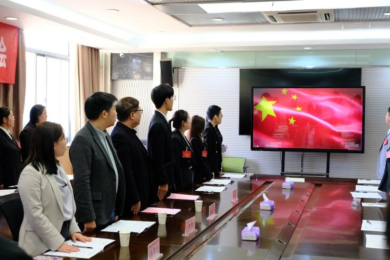 全体起立,齐声高唱国歌。