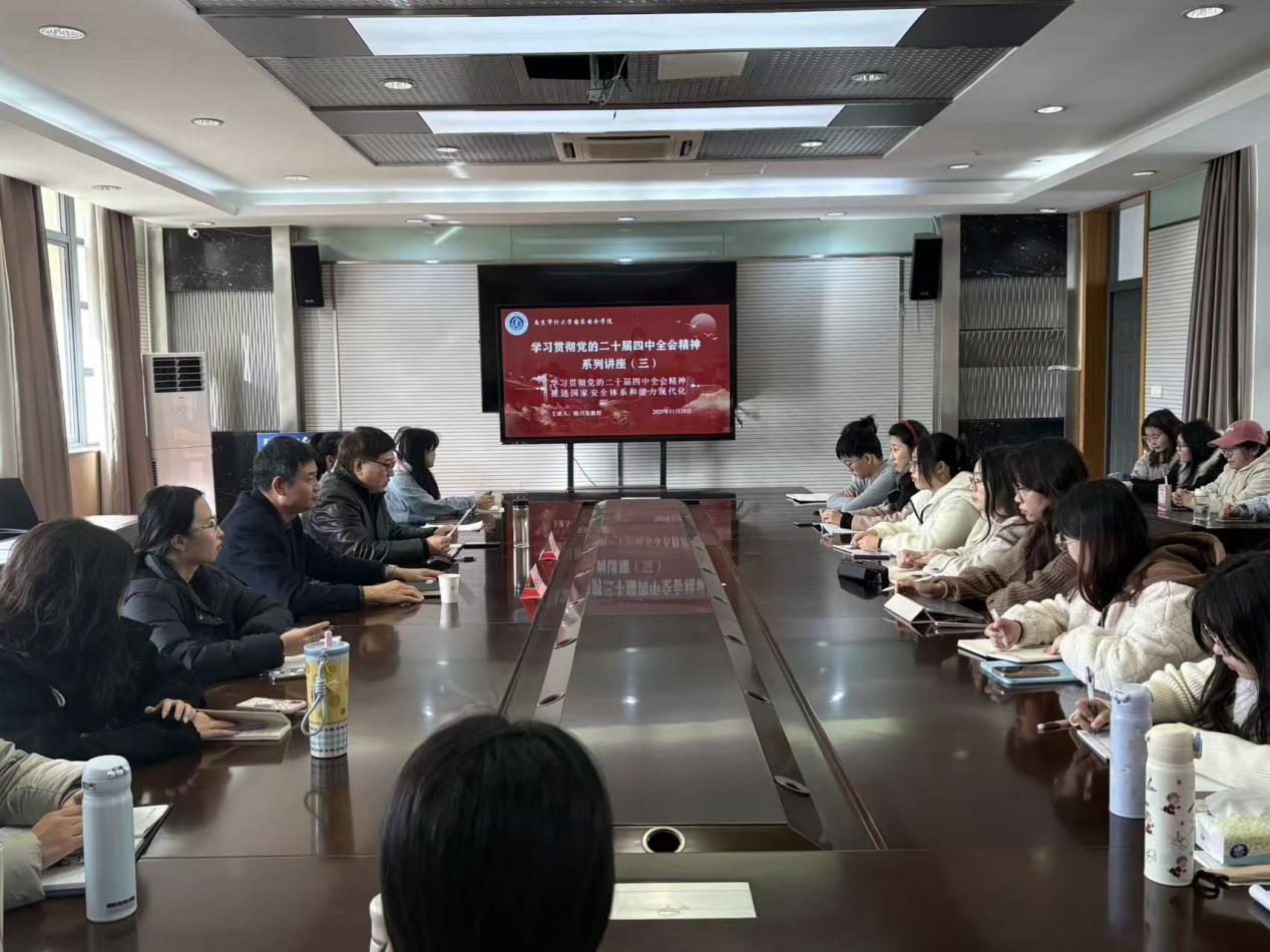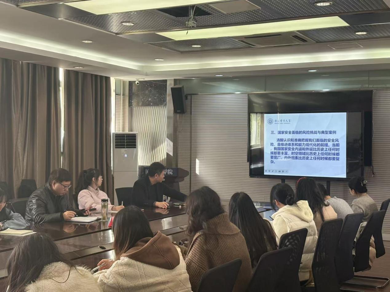 为深入学习领会党的二十届四中全会精神的丰富内涵与核心要义,2025年11月28日上午,九色 在竞慧东302会议室举办了题为《学习贯彻党的二十届四中全会精神,推进国家安全体系和能力现代化》的讲座。本次讲座由陈兴发教授主讲、汪建昌教授主持,学院30余名研究生、本科生现场聆听学习。